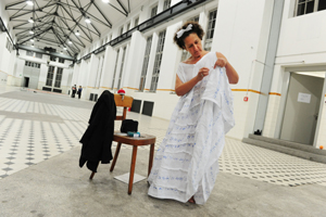 A partir de la realidad tangible construye narraciones diferentes mediante su propia presencia, los espacios cuidadosamente escogidos, los materiales utilizados y el tiempo como elemento inherente de la performance. La presencia es siempre la suya, es el material fundamental de la performance, es el cuerpo, la presencia física, no sólo como valor visual sin también como herramienta y material que se somete a un esfuerzo y a unas condiciones externas e internas determinadas. La presencia, por contraposición incluye también a la ausencia que es una manifestación de la presencia sin dejar de lado otras posibles presencias como la del espectador. El espacio, aun siendo en ocasiones ya predeterminado, siempre es escogido dentro de esa predeterminación de manera que se adapte a las peculiaridades del trabajo que se va a desarrollar y de la misma forma, la luz como creadora de espacios adquiere gran importancia en sus acciones como material modelable capaz de conseguir unas posibilidades más adecuadas que otras. El tiempo, elemento consustancial a la performance es tratado en su obra desde una doble perspectiva: un tiempo interior, el que ella siente, y un tiempo exterior experimentado por los otros, el que observa. En los años centrales de su trayectoria se detiene en la identificación del tiempo de la performance como el tiempo real de la vida: