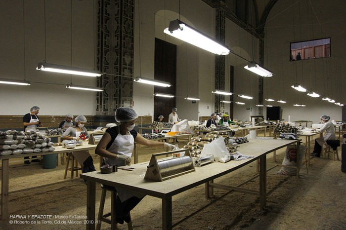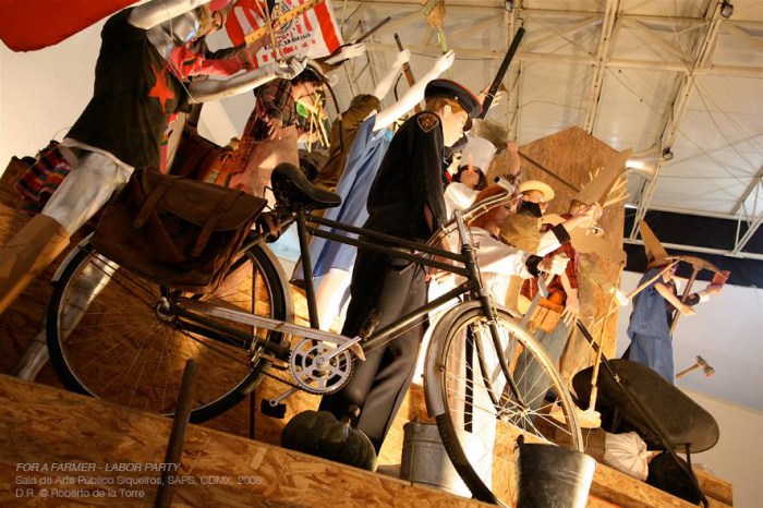 Roberto de la Torre trabaja con elementos temporales y contingentes, usualmente su obra se genera en el ámbito público donde concibe obras en las que no sólo intervienen las características visibles de los objetos, sino que involucran tanto a los objetos como a sus efectos y posibles relaciones. Sus ideas se concretan tanto en acciones efímeras, como en piezas escultóricas, arquitectónicas, experiencias sensoriales e instalaciones a través del uso de diferentes medios para espacios determinados o happenings de colaboración en ambientes con un gran número de participantes. En general su obra es una documentación de lo transitorio. El eje de su trabajo oscila entre cuestiones sociales que se dan en el contexto local, pero también en un contexto global, llevando algunas veces situaciones particulares de uno al otro. De la Torre revela una conciencia acerca de las condiciones formales y espaciales de los lugares que retoma en su trabajo, incluyendo los efectos y relaciones que estos pueden suscitar. Una tensión entre lo físico y lo intelectual impregna el tejido de sus piezas en las que el autor ha desarrollado la noción de “escultura social”, en trabajos que implican complejas negociaciones sociales, tanto en cuestiones de permisos, como de participación en cada pieza.