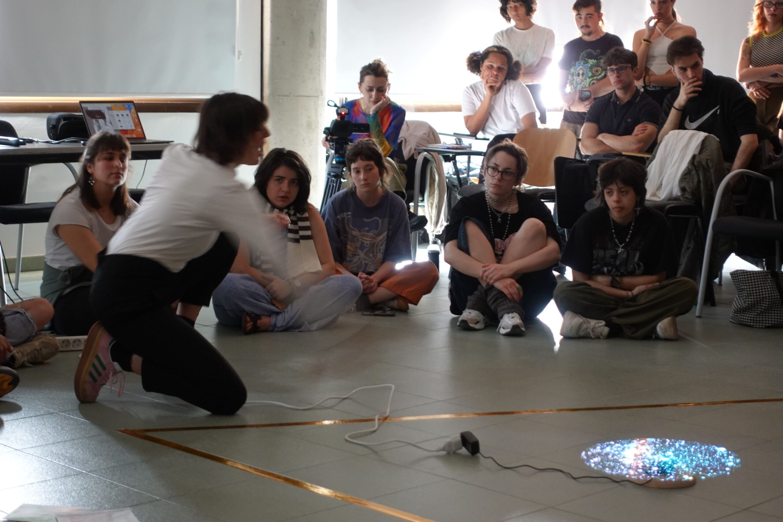 Malén Iturri. Artista e investigadora, despliega su curiosidad en torno a prácticas de sensibilización desde un enfoque somático. Su práctica artística y pedagógica pulsa desde la búsqueda de imaginarios colectivos senso-perceptivos, en torno a la vida como estado relacional continuo entre seres más que humanes. Investiga y acciona en los ámbitos del estudio del movimiento, la voz y la percepción, la improvisación, la creación escénica y la experimentación sónica.