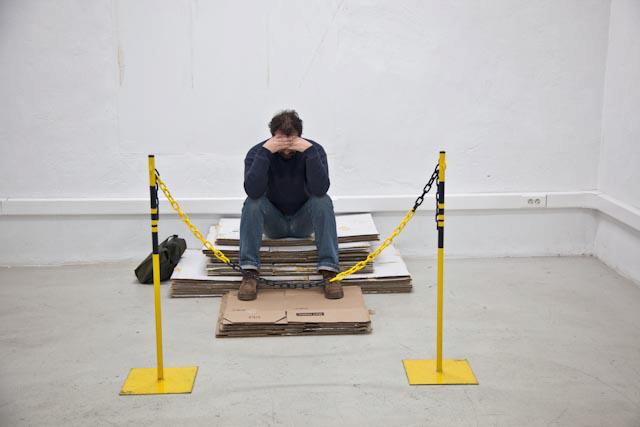 La actitud del público fue fundamental en el desarrollo de una acción que buscaba provocar su reacción. Al ir extendiéndose el espacio del artista, la superficie cubierta con cartón, el espacio del público disminuía correlativamente. El objetivo final era expulsar al espectador del espacio expositivo o, dicho de otra manera, empujarlo a tomar conciencia de su posición con respecto a la acción y a la contemplación. Esta era la parábola que se «representaba».
